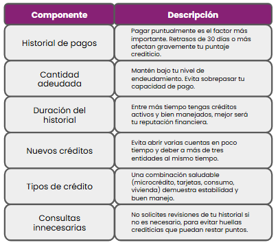 Componentes de un buen manejo de crédito